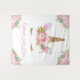 Baby shower Unicorne avec un adorable visage de licorne avec de jolies cornes d'or et des fleurs roses sur un arrière - plan rose rose et or. Cette grande table de baby shower de licorne en arrière-plan est facilement customisée avec le texte de votre choix. Vous pouvez également déplacer la face de la licorne selon les besoins pour votre texte.