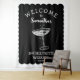 tapisserie rétro personnalisée en noir et blanc avec un verre à cocktails est parfait comme toile de fond photo de la fête de bachelorette. Célébrez votre douche nuptiale avec le thème parfait de la soirée cocktail en rose gras, le thème parfait pour la nostalgique mariée vintage les années 70 et ses demoiselles d'honneur.