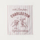 Mettez la vibe ! Fun "With Love From" tapisserie de destination personnalisée avec des lunettes à martini clinking, le fond rayé rose pastel parfait pour les photos de bachelorette, décoration de suite nuptiale et gardiens de soirée.
