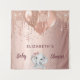 Pour une Baby Shower élégante. Un arrière-plan métallisé faux rose gold. Décoré avec des serpentins de fête rose gold, des gouttes de peinture rose, des ballons et un éléphant bébé fille mignon. Personnalisez et ajoutez le nom et une date. Peut être utilisé comme bannière de bienvenue, décoration murale pour la baby shower.