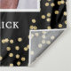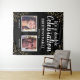 Élégante tapisserie de fête d'anniversaire conjointe avec un arrière - plan noir élégant qui peut être changée à n'importe quelle couleur, 2 photos, un éparpillement de parties scintillant de confettis or de fête, et un modèle de célébration double moderne qui est facile à personnaliser.