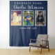 Bannière de fond de collage de photos de fête de remise de diplômes 'À travers les ans' montrant le diplômé à différentes étapes de sa vie. Utilisez-la comme fond pour une table de desserts, un bar à bonbons ou une table de buffet dans le cadre de vos décorations de salle de fête de remise de diplômes, puis elle peut doubler comme fond de photomaton plus tard dans la soirée.