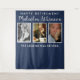 Bannière de fond de collage photo de fête de retraite 'À travers les ans' montrant le retraité à différentes étapes de sa vie. Utilisez-la comme fond pour une table de desserts, un bar à bonbons ou une table de buffet dans le cadre de vos décorations de salle de fête de retraite, puis elle pourra doubler comme fond de photomaton plus tard dans la soirée.