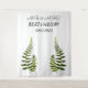 Bannière de fond de mariage classique Mr & Mrs. Bannière de calligraphie noire et blanche. Bannière de mariage élégante, rustique, aquarelle de verdure de fougère, photobooth moderne. Vous pouvez la personnaliser avec votre nom de famille et une date de lieu.