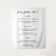 Une simple bannière de menu de mariage en tissu avec le titre "menu" en police manuscrite noire. Personnalisez avec les détails de votre menu de mariage en police serif noire.