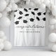 Tapisserie de fête de fin d'études avec un fond blanc simple qui peut être changé en n'importe quelle couleur, des casquettes noires tombantes et un modèle de texte de félicitations facile à personnaliser.