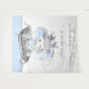 Toile de fond pour Baby Shower du prince éléphant avec un adorable éléphant prince sur un joli coussin argenté sur un fond à pois bleu et blanc. Cette toile de fond pour Baby Shower d'éléphant est facilement personnalisable avec votre texte.