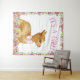 Bannière de toile de fond pour baby shower llama avec une adorable lama de bébé fille à l'aquarelle avec un joli nœud rose sur un fond floral à l'aquarelle. Cette bannière de toile de fond pour baby shower llama est facilement personnalisable avec le texte de votre choix.