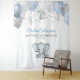 Accueillez vos invités avec cette adorable tapisserie de baptême avec éléphant garçon bleu et gris avec ballons, confettis et croix argentée. Facilement personnalisable pour votre événement en cliquant sur "personnaliser".