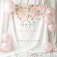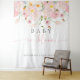 Célébrez l'arrivée joyeuse d'une petite fille avec notre tapisserie de fond de fête de naissance "Bébé en fleurs".