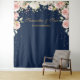 Superbe cabine photo marine et rose pâle boho mariage de tapisserie fond de bannière de la fête, facile à personnaliser, dispose de fleurs roses douces et de la verdure fraîche arrangement et parties scintillant d'or scintillants. Contactez-moi pour la personnalisation. Roses blush ©