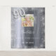 Une tapisserie de bienvenue pour une fête glamour de 90e anniversaire. Un fond métallisé argenté faux orné de fausse poussière scintillante. Personnalisez et ajoutez une photo de haute qualité, un nom et une date. Le numéro 90 est écrit avec une police de caractères de style ballon.