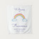 Cette tapisserie de bienvenue pour baby shower avec un arc-en-ciel aquarelle et des nuages est un moyen doux d'accueillir vos invités à la fête !