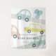 Cette tapisserie de bienvenue pour baby shower garçon présente un fond blanc avec une voiture bleue avec des ballons bleus et plusieurs autres voitures de couleurs pastel. Personnalisez-le selon vos besoins. Vous pouvez trouver des produits assortis dans ma boutique.