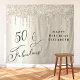 Tapisserie personnalisée élégante pour la fête d'anniversaire de 50 ans avec de faux paillettons dorés champagne qui coulent sur un fond doré et "50 & Fabuleux" écrit en script stylisé. Personnalisez avec son nom. Un espace vide dans le coin inférieur permet aux invités de prendre des photos devant le décor.