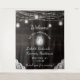 Conception Oak Ridge Rustic Dark Brown Barn Wood, Mason Jars scintillants et lumières de chaîne lumineuses avec des brins scintillants de lumières pendantes et des pots sur une texture de bois riche et profonde avec des accents de dentelle blanche. Avec des polices de caractères de script de typographie moderne. Un design de style de ferme rustique élégant - Panneau de bienvenue de mariage personnalisé !
