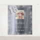 Un tapis de bienvenue pour une fête glamour de 18 ans. Un fond métallisé argenté faux décoré avec de la poussière de paillettes fausses. Personnalisez et ajoutez une photo de haute qualité, un nom et une date. Le numéro 18 est écrit avec une police de caractères de style ballon.