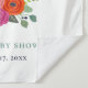 Accueillez vos invités avec style grâce à ce panneau de bienvenue pour baby shower "Baby in Bloom", avec un bouquet floral coloré et lumineux et des polices modernes et ludiques. Mignon, joyeux et facile à personnaliser avec le nom des parents et la date de la fête, ce panneau ajoute une touche festive et élégante à votre décoration de célébration.