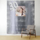 Une tapisserie de bienvenue pour une fête glamour de 30ème anniversaire. Un fond métallisé argenté faux décoré de fausse poussière de paillettes. Personnalisez et ajoutez une photo de haute qualité, un nom et une date. Le numéro 30 est écrit avec une police de caractères de style ballon.