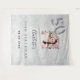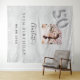 Un tapis de bienvenue pour une fête glamour de 50e anniversaire. Un fond métallisé argenté faux décoré de fausse poussière de paillettes. Personnalisez et ajoutez une photo de haute qualité, un nom et une date. Le numéro 50 est écrit avec une police de caractères de style ballon.