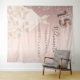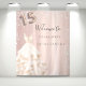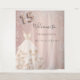 Une tapisserie de bienvenue pour une Quinceañera girly et glamour, fête des 15 ans. Un fond métallisé imitation rose gold orné de poussière de paillettes argentées et d'une robe. Personnalisez avec un nom. Le numéro 15 est écrit avec une police de caractères de style ballon.