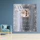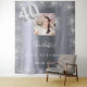Une tapisserie de bienvenue pour une fête glamour de 40 ans. Un fond métallisé argenté faux décoré de fausse poussière de paillettes. Personnalisez et ajoutez une photo de haute qualité, un nom et une date. Le numéro 40 est écrit avec une police de caractères de style ballon. Peut également être utilisé comme toile de fond pour photomaton et décoration murale de fête.
