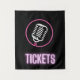 Le texte "Billets" violet néon avec silhouette micro style rétro néon sur arrière - plan noir en fait un excellent design pour une variété d'événements allant des événements de musique live aux concours de chant