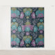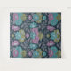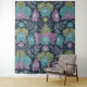 Cette tapisserie présente des fleurs dans les tons violets, bleus et vert olive entourées de frondes de fougères violettes muettes et de feuilles sur un arrière - plan bleu foncé.