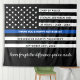 Trait Bleu Mince Police Retraite Tapisserie - Etats-Unis Drapeau américain design en couleurs Police Drapeau, design moderne noir bleu. Cette tapisserie murale personnalisée de la police est parfaite pour célébrer votre agent d'application de la loi à la retraite, les décorations du parti de retraite de la police, les cadeaux de retraite de la police. Personnalisez cette bannière de tapisserie de la retraite de la police avec le grade, le nom, le numéro d'insigne, les années de service et la date de retraite, et le message personnel. Parfait pour tous les partis de retraite des policiers et les cadeaux de retraite des forces de l'ordre. DROIT D'AUTEUR © 2020 Judy Burrows, Black Dog Art - Tous droits réservés. Bleu Léger Drapeau Police personnalisée Tapisserie de retraite