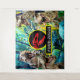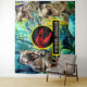 Tenture Bleu tropical T Rex fond