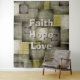 Couleur Automne Blocage Tapisserie en tissu. Magnifique motif moderne et contemporaine, gris d'automne et blocs de couleur vert marron. Préparez le terrain pour la saison. Gardez la Citation "Foi, Espoir, Amour" ou ajoutez votre propre phrase ou monogramme.
