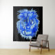 un design décoratif d'un lion mâle aux couleurs bleu surréaliste. peinture unique d'un grand chat d'afrique sauvage comme tapisserie murale décorative