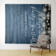 Avec de jolies lampes à cordes et un script de typographie chic sur un arrière - plan de panneaux de bois bleu, ce décor chic de cabine photo peut être personnalisé avec votre message, noms et date spéciale. Conçu par Thisisnotme©