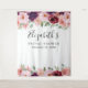 Tapisserie élégante et personnalisée pour photobooth pour votre baby shower de mariage avec des fleurs aquarelles rose blush et bordeaux et votre prénom dans un style script. Vous pouvez personnaliser davantage avec la date de votre événement.