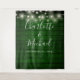 Doté de jolies lampes à cordes et d'un script de signature typographique chic sur un arrière - plan de panneaux de bois vert, ce stand photo mariage rustique peut être personnalisé avec vos noms et date spéciale. Conçu par Thisisnotme©