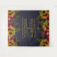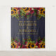 Bouquets de tournesols jaunes dorés et de roses bordeaux foncé sur un fond bleu marine minuit foncé avec votre texte personnalisé en typographie dorée fausse créant un magnifique fond rustique de mariage pour une boîte à photos. ++++++++++ Facile à personnaliser et parfait pour les mariages thématiques rustiques vintage traditionnels de fin d'été, d'automne ou d'hiver.