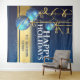 Tenture Boules de Noël dorées bleues ruban joli salutation