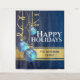 Apportez l'esprit de Noël à votre maison ou à votre bureau avec ce magnifique graphique vectoriel tridimensionnel représentant des boules d'arbre de Noël en spirale bleue et dorée suspendues au bout de jolis rubans faux dorés. Elles sont encadrées par un fond bleu foncé rempli de neige et ont une bannière faussement dorée au-dessus d'elles. Personnalisez les modèles avec votre message de Noël personnalisé ; message ou citation.