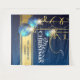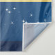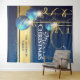 Apportez l'esprit de Noël à votre maison ou à votre bureau avec ce magnifique graphique vectoriel tridimensionnel représentant des boules de sapin tourbillonnantes bleues et dorées suspendues au bout de rubans de faux doré. Chaque boule est éclairée d'une lumière brillante et un sillage de poussière de fée magique s'éloigne de la boule du haut en direction de la silhouette blanche du Père Noël dans son traîneau tiré à travers le ciel nocturne par ses rennes. Ils sont encadrés par un fond sombre et enneigé de couleur bleu foncé et surmontés d'une bannière en faux doré. Personnalisez les modèles avec votre vœu de Noël personnalisé, message ou citation.