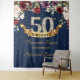 Bannière de toile de fond de tapisserie de 50e anniversaire floral rose et bourgogne fuchsia, avec des fleurs de merlot rouge profond bohème et des roses roses fuchsia, et des paillettes dorées, facile à personnaliser, 50e anniversaire, 60e anniversaire, 70e anniversaire ou tout âge - contactez-moi pour un autre âge ou pour une personnalisation. Roses fuchsia