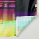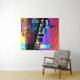 Tapisserie dans une peinture digitale de l'horizon de New York, avec le pont Brooklyn à la tombée de la nuit, dans des tons vifs de bleu et rose fuchsia profond