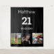 Pour une fête d'anniversaire des 21 ans. Un collage de 3 de vos photos de ses amis, famille, intérêts ou animaux. Personnalisez et ajoutez son nom, âge 21 et une date. Date de naissance ou date de la fête d'anniversaire. Fond noir. Texte de couleur blanche.