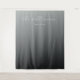 Ce décor de fond de mariage élégant présente un design minimaliste avec un fond gris dégradé qui passe du clair au foncé. Le point focal est la police de caractères cursifs élégante, qui ajoute une touche de sophistication et de personnalisation. En dessous, une police sans-serif simple fournit de la clarté pour toute date ou tout détail que vous souhaitez inclure. La palette de couleurs monochromes crée une atmosphère sereine et moderne, parfaite pour une célébration de mariage intemporelle et discrète.