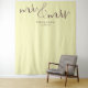 Ce décor de fond de mariage élégant présente un design minimaliste avec un fond jaune pastel doux, créant une atmosphère chaleureuse et accueillante. La mise en page comprend un texte cursif stylisé pour "M. & Mme" en violet foncé, associé à une police serif classique pour le nom de famille et la date, offrant une touche sophistiquée. L'espace négatif généreux améliore la lisibilité et maintient un aspect propre et épuré, parfait pour les célébrations formelles. Son élégance discrète en fait un choix idéal pour capturer des moments mémorables de votre journée spéciale.