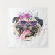 Les caractéristiques de conception ce un portrait mignon d'un carlin utilisant les lunettes de soleil roses de coeur et un arc rose dans une aquarelle sensationnelle dénomment.