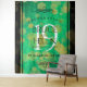 Faites du 19e anniversaire de mariage en jade une célébration inoubliable avec cette tapisserie commémorative ! Des lettres élégantes avec des confettis hexagonaux pailletés d'or sur un fond vert jade tacheté bordé de barres noires ajoutent une touche mémorable pour cette occasion spéciale et ce jalon. Personnalisez avec les noms des couples, les dates de mariage et les messages de félicitations.