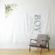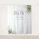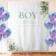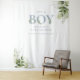 C'est un garçon - Toile de fond pour photobooth de baby shower avec une typographie élégante en bleu poussiéreux et un beau feuillage botanique. Conçu par Thisisnotme©