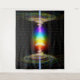 Une magnifique tapisserie murale noire illustrant le corps énergétique d'une personne en méditation avec un pilier de lumière descendant du ciel ; activant les chakras et créant un Terrain Toroidal Divin Yogic autour du corps. C'est cette activation pleine énergie qui invitation les expériences mystiques du chercheur. Le champ toroïdal relie le yogi/yogini à la grille Existentielle de Conscience et provoque instantanément des Lumières. Une image d'inspiration spectaculaire et parfaite pour votre maison ou votre studio de yoga !