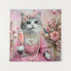 Tenture Chat adorable en robe rose avec perles