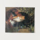 Ce dessin présente une peinture de l'artiste franco-belge Henriëtte Ronner-Knip (1821-1909), plus connue pour son art animal. Le tableau montre cinq chats et chatons reposant ensemble sur une couverture dans un petit abri en bois. Il y a du lierre qui pousse autour de l'abri, ainsi que d'autres plantes et fleurs. Les chats ont une fourrure de couleur différente : l'une est du gingembre, l'autre est blanche, deux sont gris et l'autre a une fourrure noire. Les chatons sont très mignons et adorables. L'oeuvre originale a été peinte en 1844.